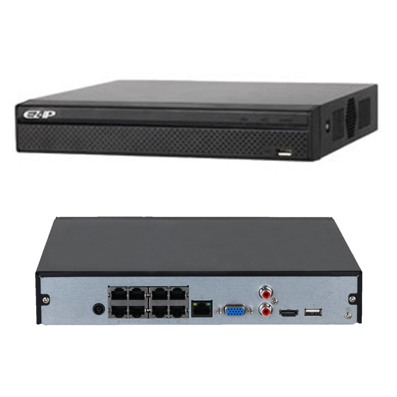 Videoregistratore Dahua 8 canali , modello EZ-NVR1B08-P, la risoluzione è in Ultra HD 2Mp , la banda massima è di 80Mbps e la compressione video è la h.265+.