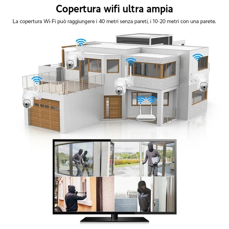 Kit Videosorveglianza Wireless Ptz Ip 4 Telecamere 5 Mpx Wifi Da Remoto 1 Tb