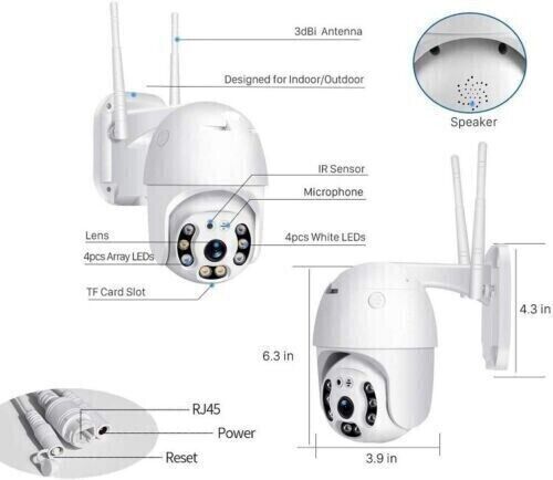 2X IP Cam PTZ Wifi Camera Dome Wireless External Yoosee App Micro SD
