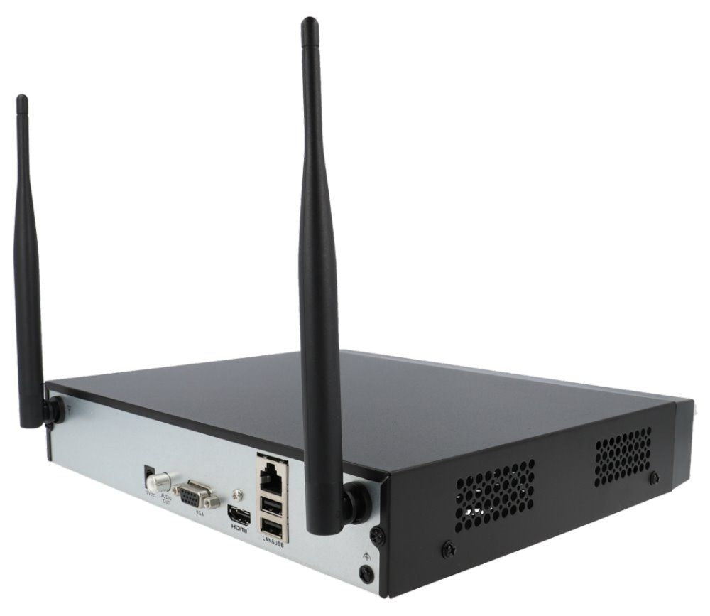 NVR recorder for IP cameras with WiFi module and 4 video channels . Maximum resolution 4.0 Mpx , Compression H.265+ , Bandwidth 40 Mbps .