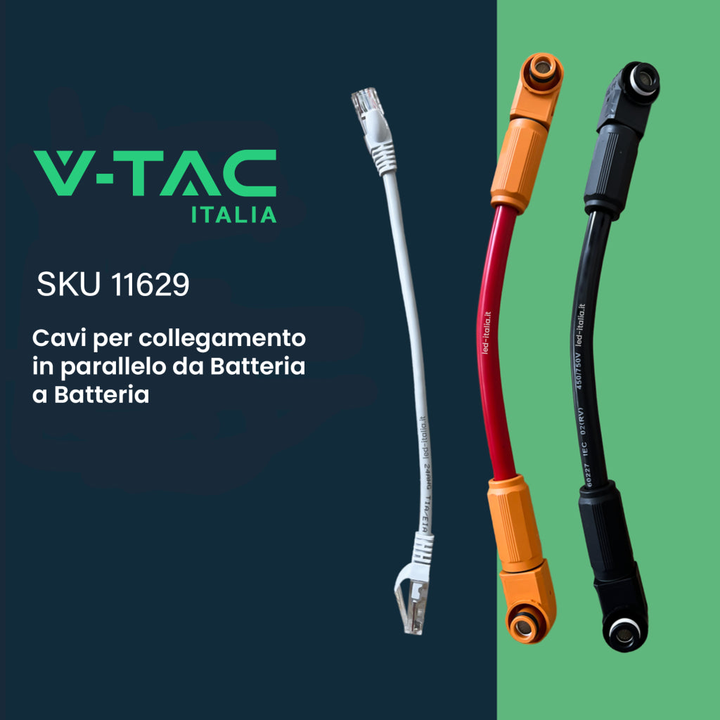 Professional cable set designed for parallel connection of battery modules , ideal for extending the capacity of photovoltaic storage systems. Compatible with V-TAC VT48100E-P2 batteries (SKU 11377) , they ensure safe and efficient connections.