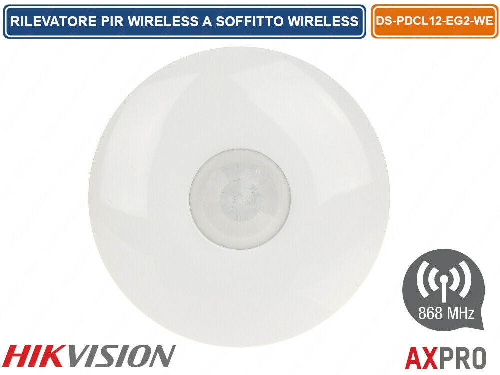 Hikvision AXPRO DS-PDCL12-EG2-WE Rilevatore Sensore di movimento PIR a soffitto Wireless 868Mhz 12M 360° da interno