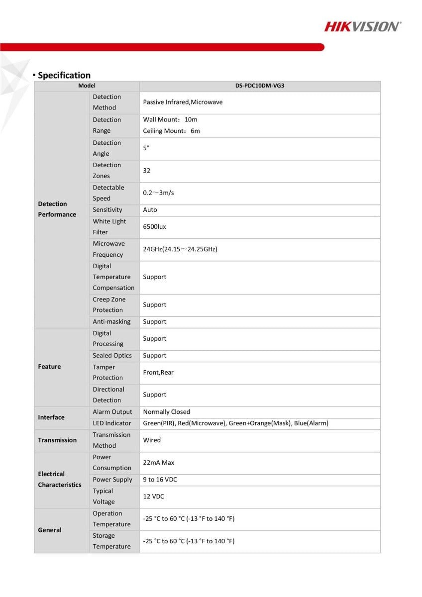 Hikvision Rilevatore Curtain Filare Doppia Tecnologia Antimask Ds-Pdc10Dm-Vg3