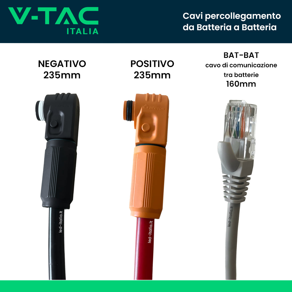 Set di cavi professionali progettati per il collegamento in parallelo di moduli batteria, ideali per estendere la capacità di sistemi di accumulo fotovoltaici. Compatibili con le batterie V-TAC VT48100E-P2 (SKU 11377), assicurano connessioni sicure ed efficienti.