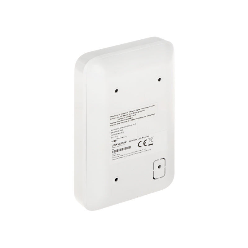 DS-PK1-LT-WE - Hikvision - Wifi Keypad Touch Tastiera Allarme interna. Comunicazione wireless bidirezionale a 868 MHzz. Indicatori Led di stato, Buzzer -Pulsante one-push per allarme medico, incendio, antipanico - Configurabile e gestibile da remoto via App - Batterie 4xCR123 - Per il fissaggio a muro - Colore bianco