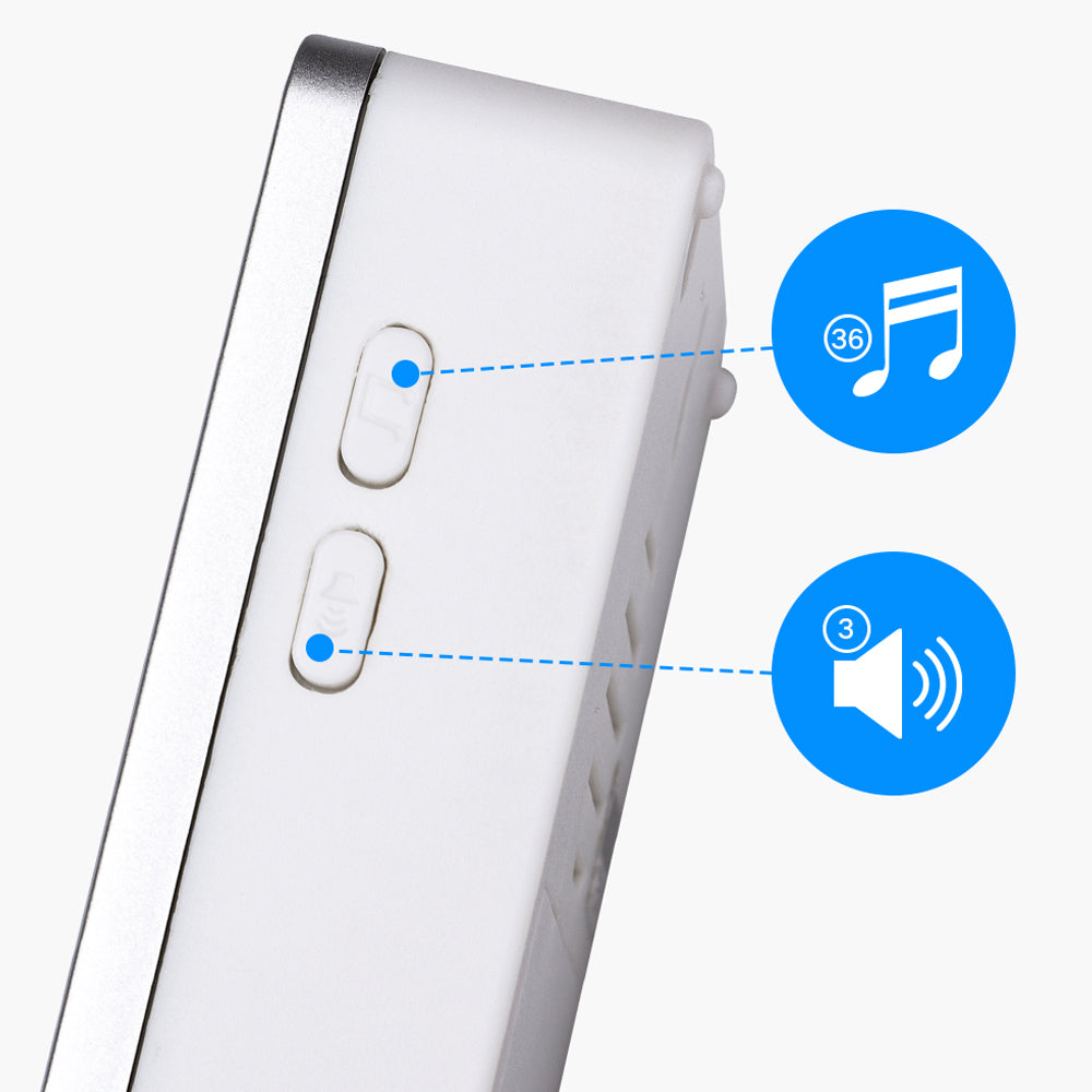 Il campanello wireless di Aigostar è composto da un trasmettitore (unità esterna, pila inclusa) e un ricevitore (unità interna, 3x stilo AA, non incluse), con 36 suonerie polifoniche e 3 livelli per il volume. Design elegante e moderno, prestazioni eccellenti (distanza coperta fino a 150 metri) e nessun problema di cablaggio.