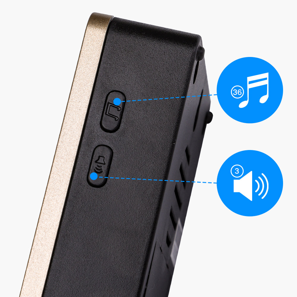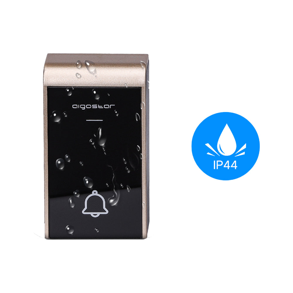 CAMPANELLO SENZA FILI A BATTERIE WIRELESS DIGITALE IP44 PORTE CASA UFFICIO PORTA 150M AIGOSTAR NERO/ORO 7988