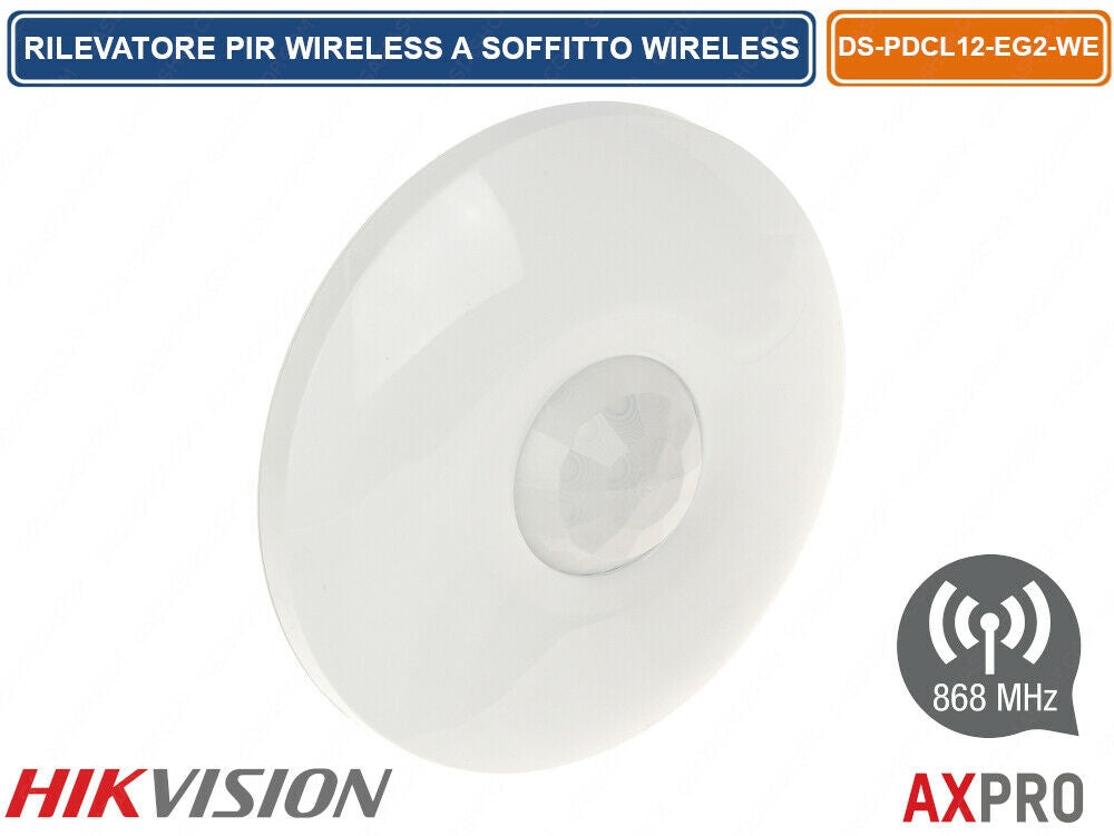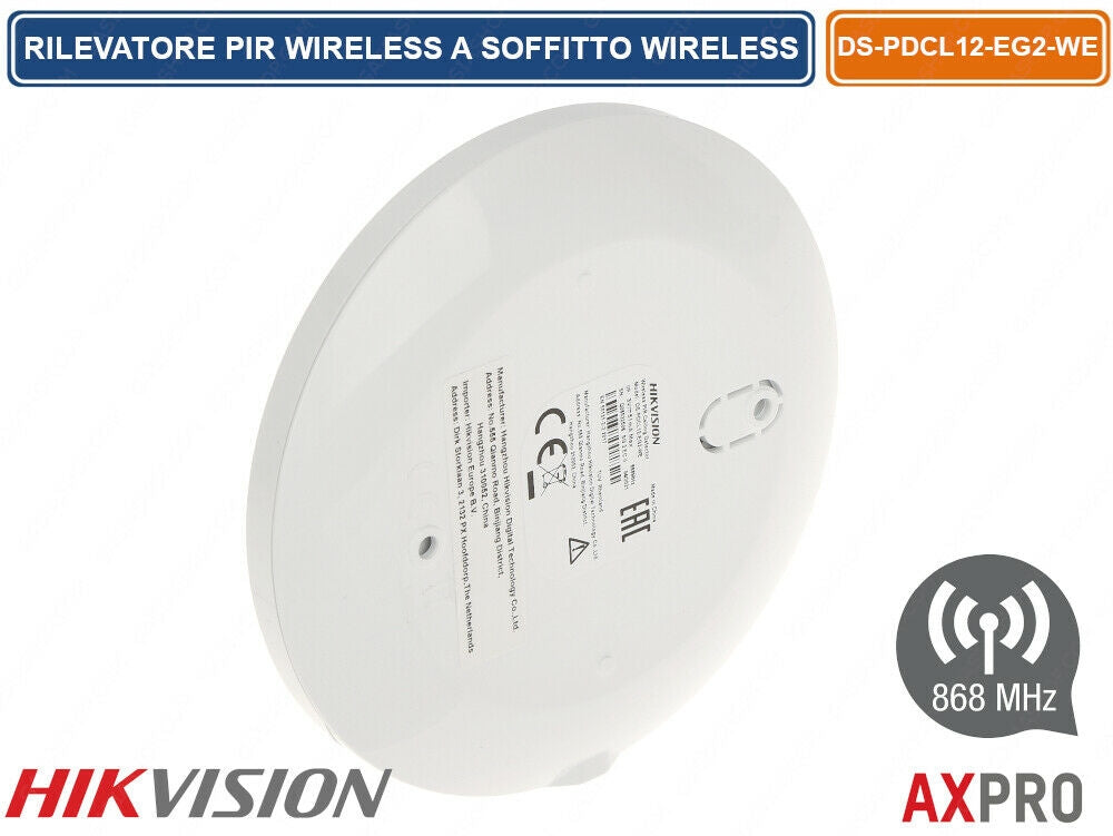 Hikvision AXPRO DS-PDCL12-EG2-WE Rilevatore Sensore di movimento PIR a soffitto Wireless 868Mhz 12M 360° da interno