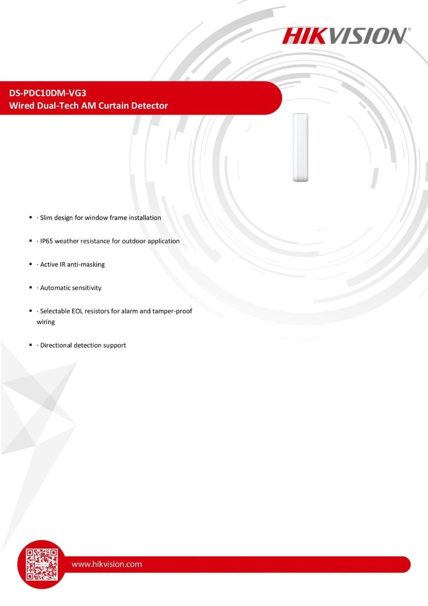 Hikvision Rilevatore Curtain Filare Doppia Tecnologia Antimask Ds-Pdc10Dm-Vg3