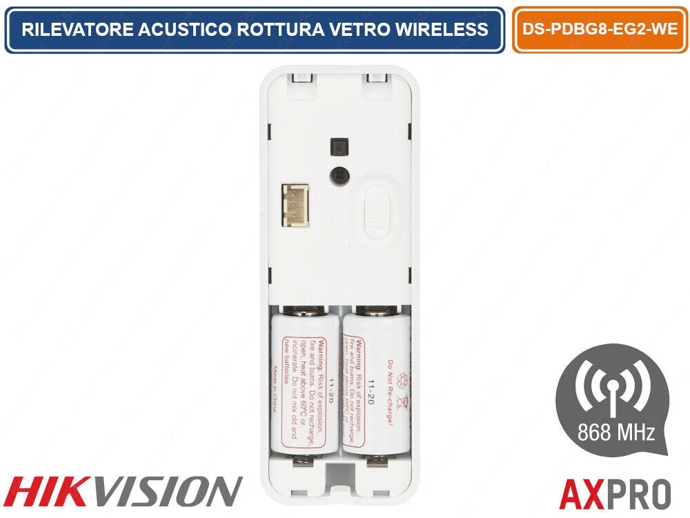 Rilevatore Acustico Di Rottura Vetro Wireless 868 Mhz 8 M 120° Hikvision Ax Pro