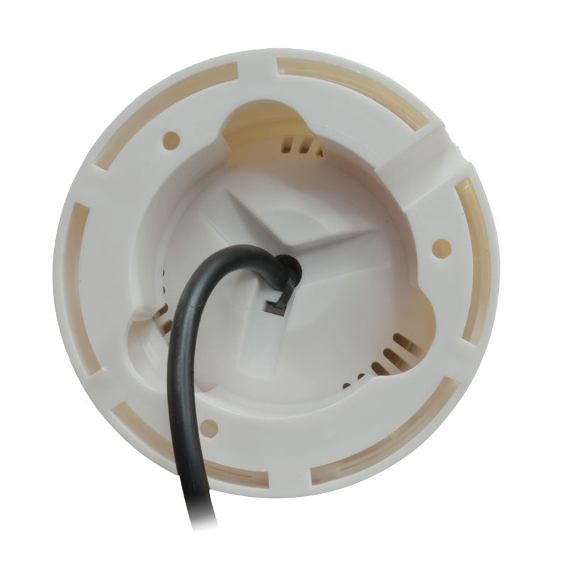 Corpo in PVC, per uso interno. Ha una sfera con tre assi di rotazione (3AXIS) che permettono la regolazione facile e precisa dell'angolo di visione, con installazione a parete o a soffitto.